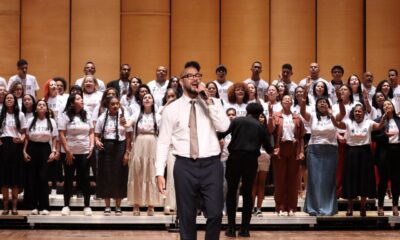 O cantor gospel Ton Carfi reuniu mais de 500 alunos do projeto “Tom das Periferias”, no Teatro Municipal de São...