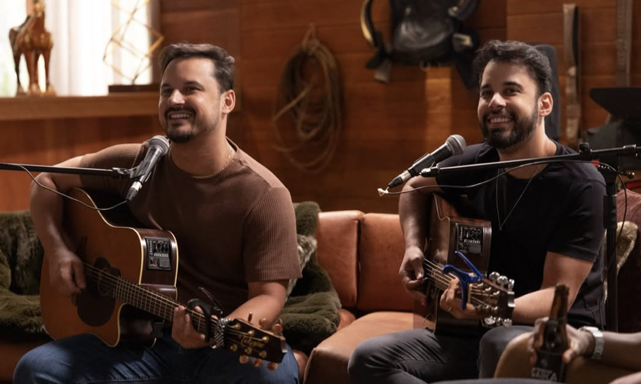 Na cena, a dupla é recebida por João Raul, personagem de Filipe Bragança, para uma resenha de amigos. Em um encontro descontraído, que mistura conversa e música, Clayton & Romário soltam a voz ao som de “Aô Goiás”, reforçando o clima sertanejo da trama.